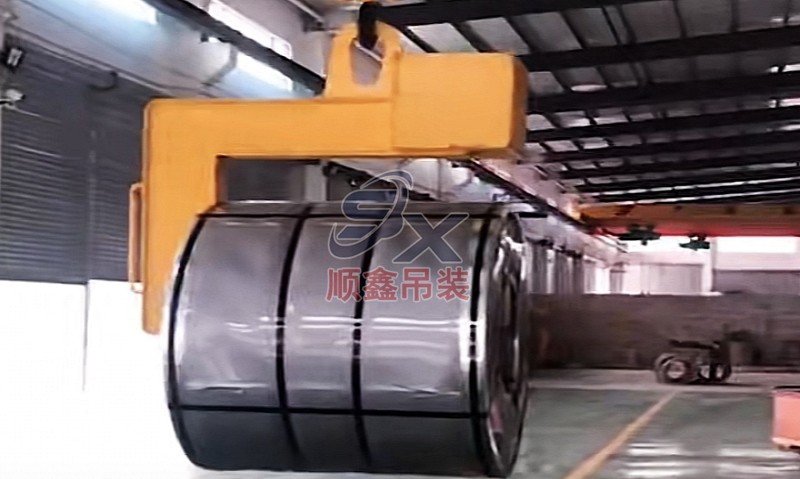 翻轉吊具通過機械剪力原理,對立式擺放的卷鋼進行單邊抓取,來完成卷鋼的裝卸,當改變重力點時,可以對卷鋼進行翻轉,作業(yè)時不傷鋼卷。其吊耳采用加厚處理,焊縫飽滿牢固、延長使用壽命。